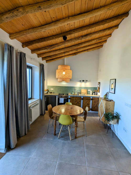 If you are staying with us during the cooler months, this apartment has a wood stove in the open living area and radiators in all rooms. The apartment has wheelchair access.