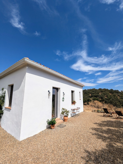 Casa de Campo comes with a fully-equipped kitchen, living area, one bedroom with a super king bed (180x200cm) and an ensuite bathroom with a large walk-in shower.